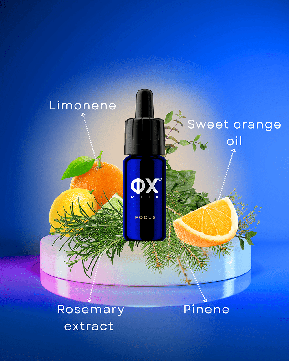 Terpen mirisa citrusa koji je prisutan u korama citrusnog voća. Limonen je proučavan zbog svog potencijala za podizanje raspoloženja i smanjenje stresa, doprinoseći poboljšanoj koncentraciji.